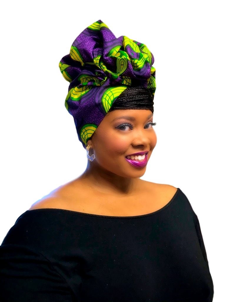 "By the Sea" African Print Head Wrap Purple, Black, & Seafoam Blue
